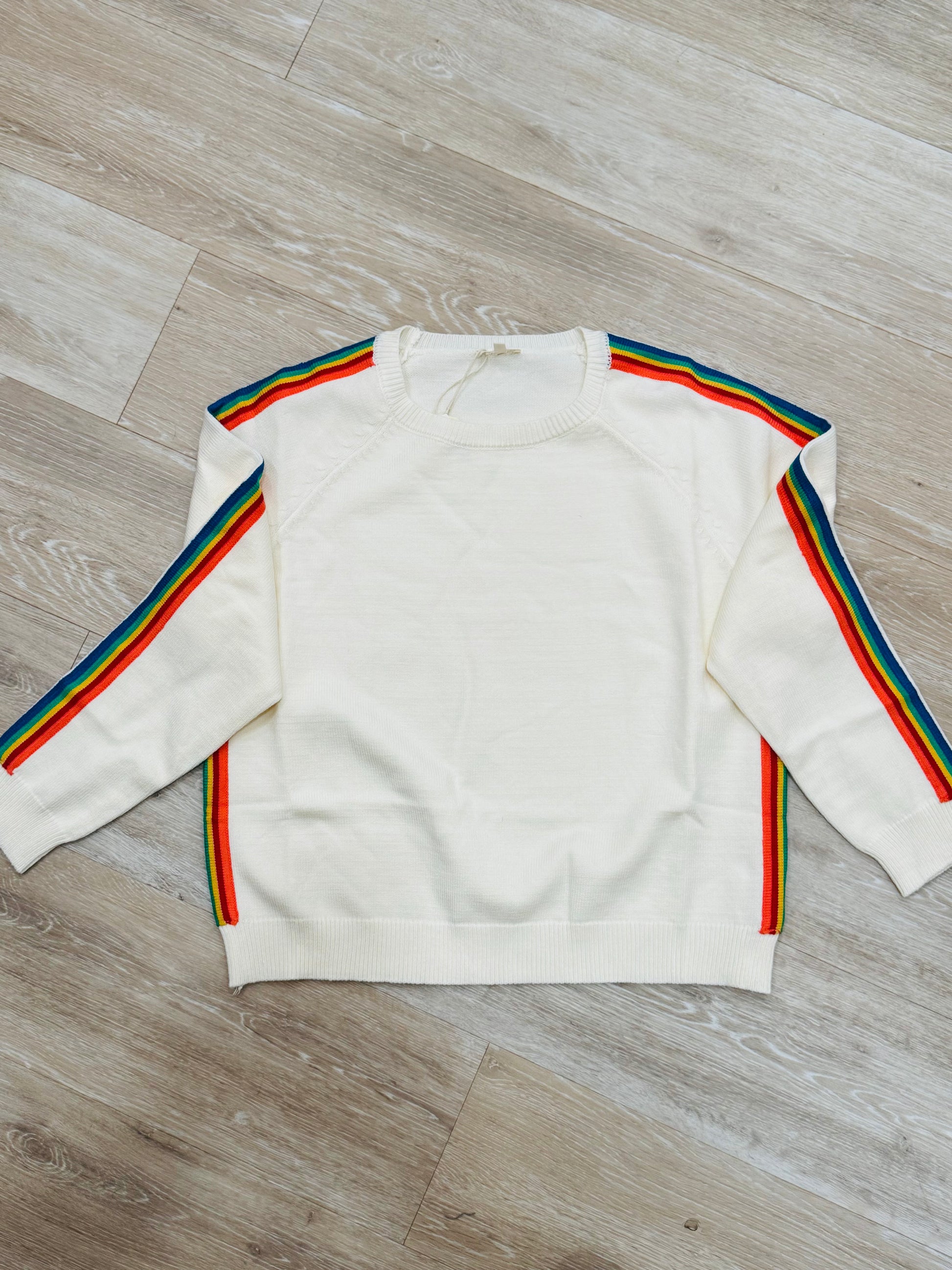 Long sleeves soft & comfy sweater top with rainbow contrast accent.
